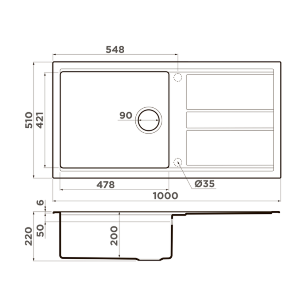 Мойка кухонная Omoikiri из коллекции Kitagawa 100-WH имеет размеры 1000х510 мм., изготовлена из искусственной керамики. Форма — прямоугольная, одна чаша без отверстия для смесителя. Сифон в комплекте. Ширина чаши 47,8. Врезной монтаж. Имеется крыло.