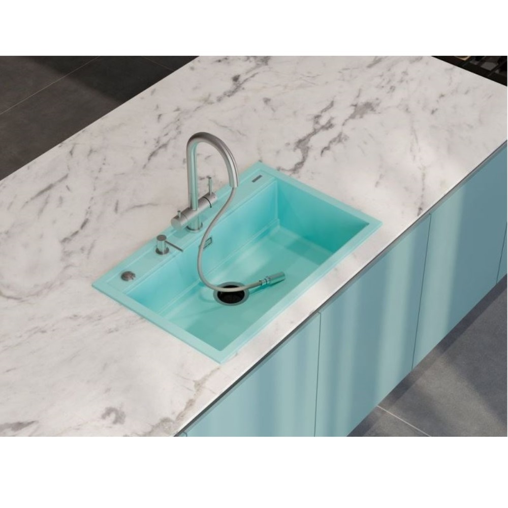 Мойка кухонная Omoikiri из коллекции Kitagawa 79-LB-AZ имеет размеры 790х510 мм., изготовлена из искусственной керамики. Форма — прямоугольная, одна чаша без отверстия для смесителя. Сифон в комплекте. Ширина чаши 72,6. Врезной монтаж.