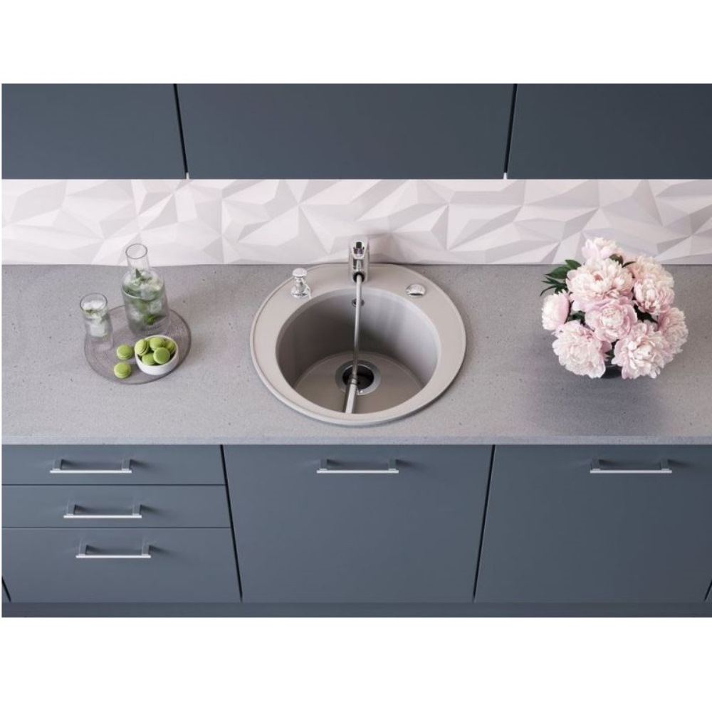 Мойка кухонная Omoikiri из коллекции Miya 50R-BE имеет размеры 505х490 мм., изготовлена из искусственного гранита. Форма — круглая, одна чаша без отверстия для смесителя. Сифон в комплекте. Ширина чаши 37,5. Врезной монтаж.