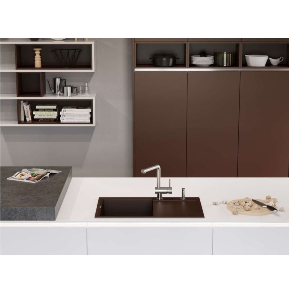 Мойка кухонная Omoikiri из коллекции Sakaime 79-SA имеет размеры 790х500 мм., изготовлена из искусственного гранита. Форма — прямоугольная, одна чаша без отверстия для смесителя. Сифон в комплекте. Ширина чаши 39. Врезной монтаж. Имеется крыло.