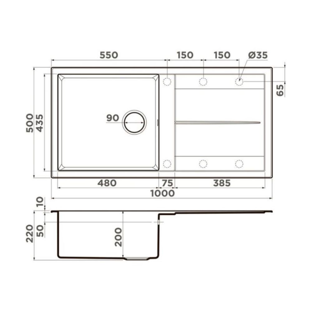 Мойка кухонная Omoikiri из коллекции Sumi 100A-WG имеет размеры 1000х500 мм., изготовлена из искусственной керамики. Форма — прямоугольная, одна чаша без отверстия для смесителя. Сифон в комплекте. Ширина чаши 48. Врезной монтаж. Имеется крыло.