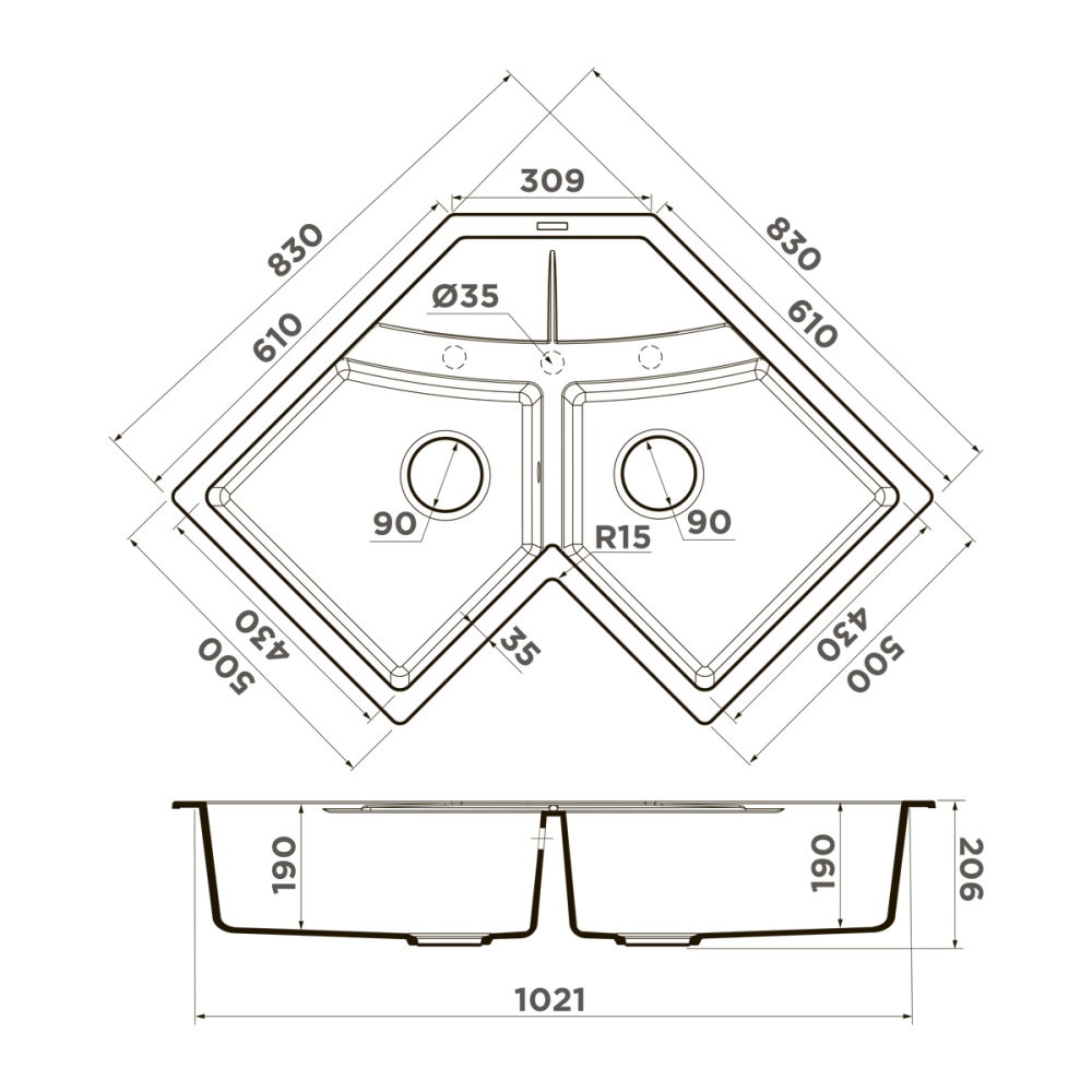 Мойка кухонная Omoikiri из коллекции Sumi 83C-WH имеет размеры 1021х830 мм., изготовлена из искусственного гранита. Форма — угловая, две чаши без отверстия для смесителя. Сифон в комплекте. Ширина чаши 43. Врезной монтаж.
