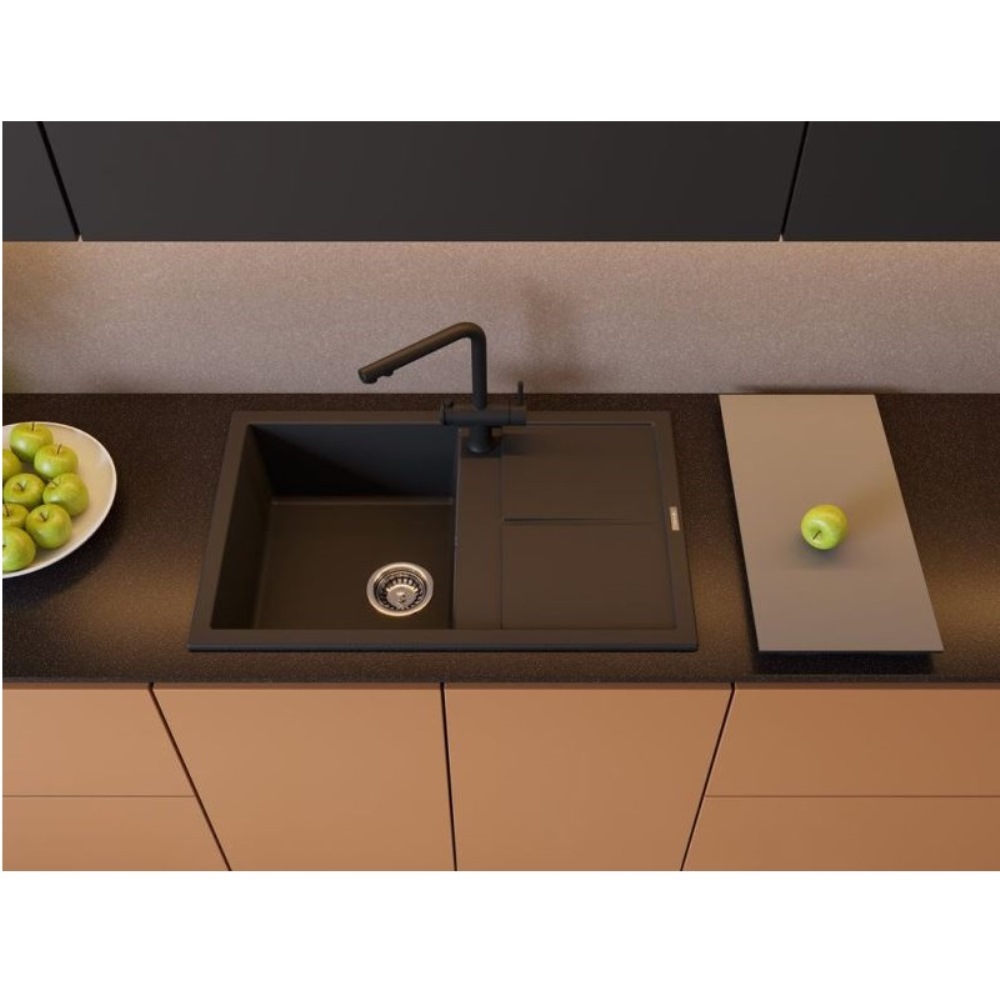 Мойка кухонная Omoikiri из коллекции Sumi 79A-WH имеет размеры 790х500 мм., изготовлена из искусственной керамики. Форма — прямоугольная, одна чаша без отверстия для смесителя. Сифон в комплекте. Ширина чаши 38. Врезной монтаж. Имеется крыло.