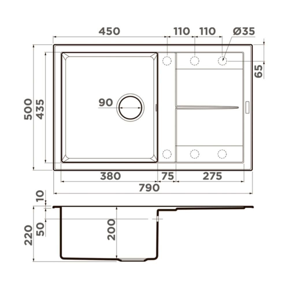 Мойка кухонная Omoikiri из коллекции Sumi 79A-WG имеет размеры 790х500 мм., изготовлена из искусственной керамики. Форма — прямоугольная, одна чаша без отверстия для смесителя. Сифон в комплекте. Ширина чаши 38. Врезной монтаж. Имеется крыло.