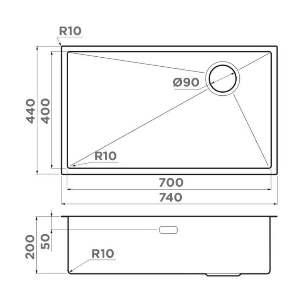 Мойка кухонная Omoikiri из коллекции Taki 74-U/IF-R-LG Side имеет размеры 740х440 мм., изготовлена из нержавеющей стали. Форма — прямоугольная, одна чаша без отверстия для смесителя. Сифон в комплекте. Ширина чаши 70. Подстольный и врезной монтаж, монтаж вровень.