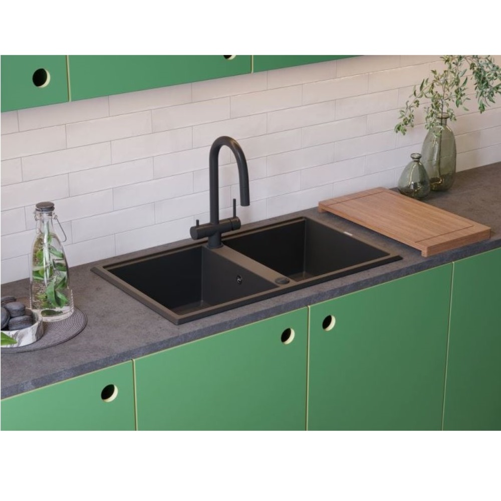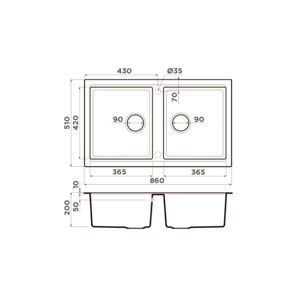 Мойка кухонная Omoikiri из коллекции Tedori 86-2-WH имеет размеры 860х510 мм., изготовлена из искусственного гранита. Форма — прямоугольная, две чаши без отверстия для смесителя. Сифон в комплекте. Ширина чаши 36,5. Врезной монтаж.