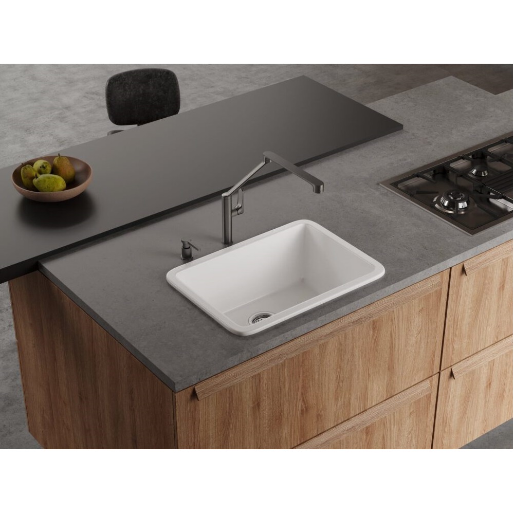 Мойка кухонная Omoikiri из коллекции Torishima 67-U/I-WH имеет размеры 673х483 мм., изготовлена из искусственной керамики. Форма — прямоугольная, одна чаша без отверстия для смесителя. Сифон в комплекте. Ширина чаши 60,3. Подстольный и врезной монтаж.