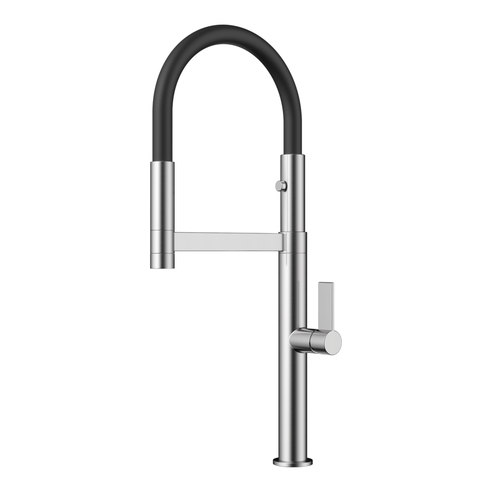Смеситель для кухни Omoikiri Osaka оснащен рычажным управлением для регулировки температуры и напора воды. Горизонтальный монтаж на 1 отверстие. Гибкий излив 220 мм.