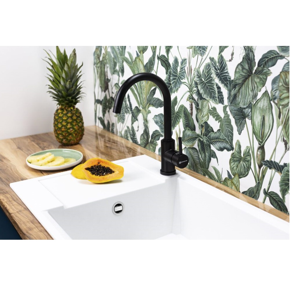 Смеситель для кухни Omoikiri Shinagawa 2 Plus с подключением фильтра оснащен рычажным управлением для регулировки температуры и напора воды. Горизонтальный монтаж на 1 отверстие. Поворотный излив 179 мм.