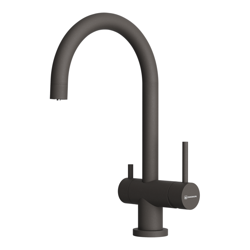 Смеситель для кухни Omoikiri Yamada-P с подключением фильтра оснащен рычажным управлением для регулировки температуры и напора воды. Горизонтальный монтаж на 1 отверстие. Поворотный излив 204 мм.